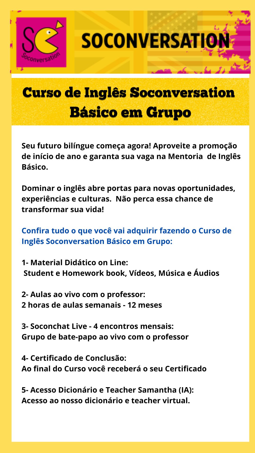 Descrição do Curso Mentoria de Inglês Soconversation Basic Level 1 - Group
